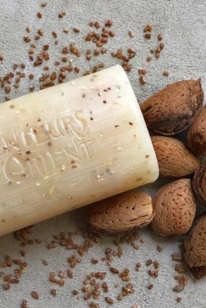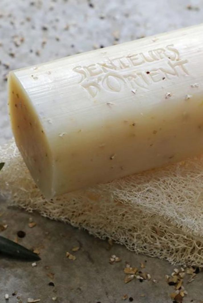 Enhance your daily ritual with our classic rough-cut Almond Exfoliating Soap, handcrafted by local artisans in Lebanon and air dried for ten days. Each pure vegetal bar blends olive oil, shea butter, glycerin, and vitamin E to soften the skin while creating a rich, nourishing lather.